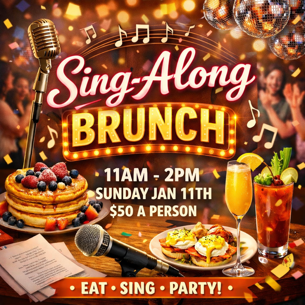 Join us for a brunch party where the mimosas flow and the music never stops! Our live DJ will spin all your favorite songs while you eat, sip, and SING loud + proud with your crew. 🎤🥂🍳